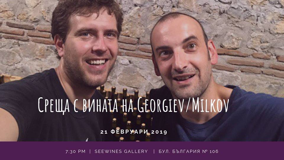 Запознай се с Петър Георгиев и Радостин Милков – хората, които стоят зад любимите вина Georgiev/Milkov. Освен това ще имаш щастието да пробваш и сравниш Мавруд 2016-2017, Рубин 2017, както ще се научиш и да дегустираш едно абсолютно изключително вино, произведено по стара технология за производство на пенливо вино, при това нефилтрирано. Като изненада всеки участник ще получи и отстъпка при закупуване на някое от вината. Всичко това в галерия SeeWines.