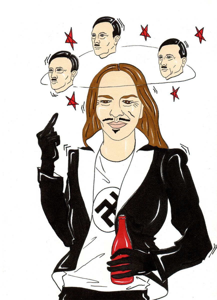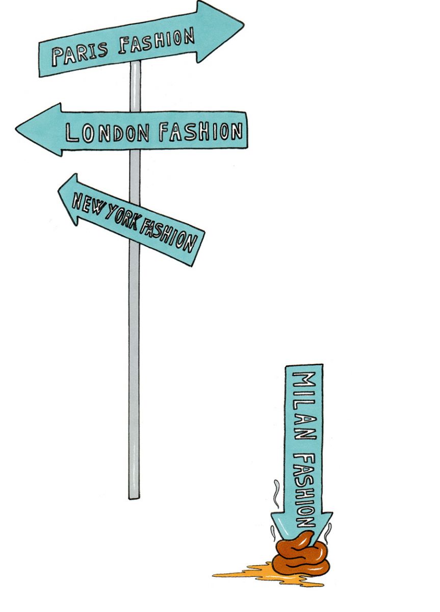 Нарисувах себе си като Давид на Микеланджело, внимателно изливащ струя върху главите на Ана Уинтур, Карл Лагерфелд и Валентино Гаравани. Това още ме разсмива.