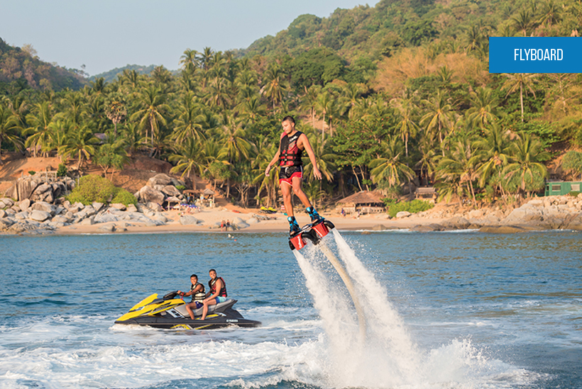 Един от най-новите членове на водните спортове, който се превърна в истински хит и бързо трупа нарастваща маса от почитатели. Позволява ти едновременно да полетиш на няколко метра над водата, да се гмурнеш и пак да излезеш скоростно, като глътнеш малко солена вода, разбира се. В основата на този атрактивен спорт е налягането на водния стълб и струята от джета, необходимо за практикуването на Flyboard.