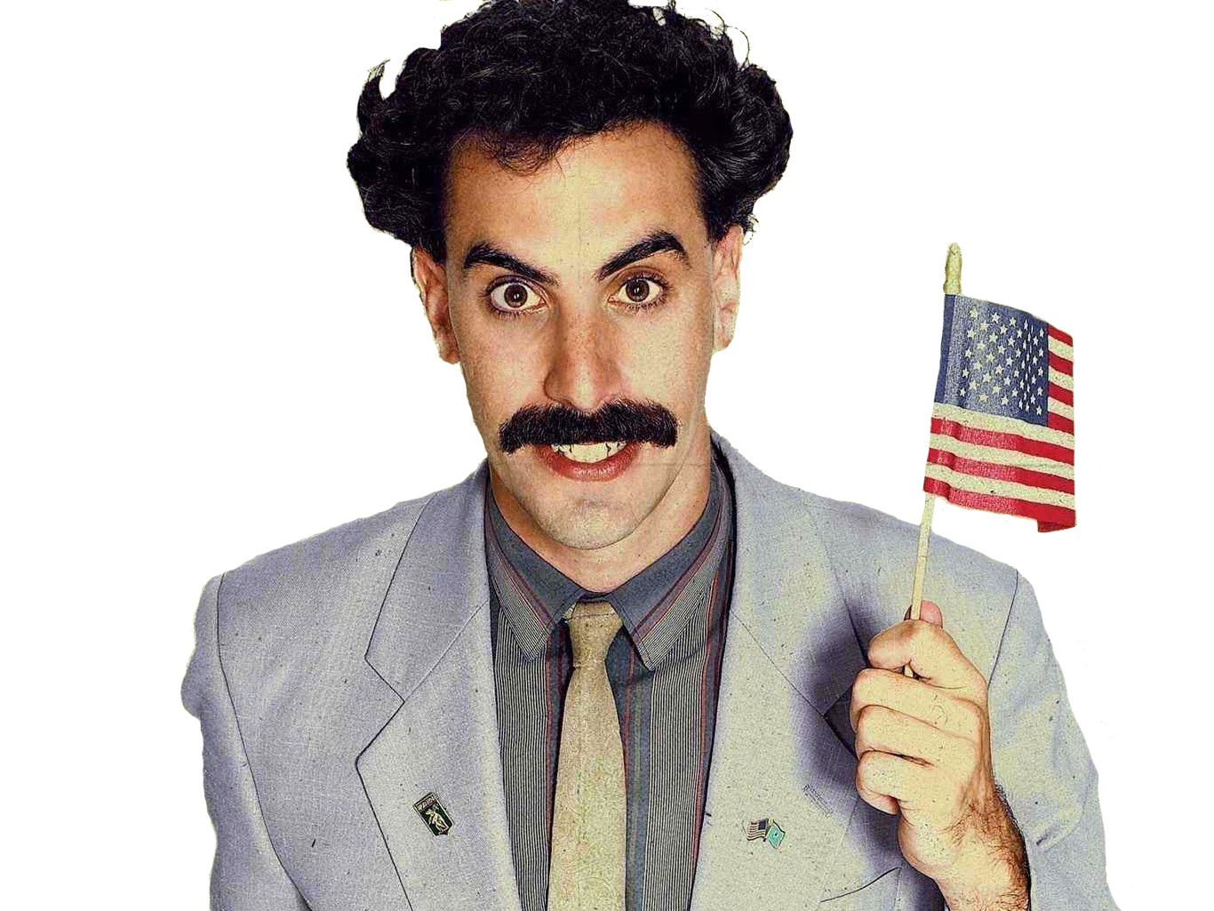 Може би най-смелият мустак в съвременното кино е този на Борат – едно от превъплъщенията на английския комик Саша Барън Коен, който толкова успешно се представя за казахстански репортер, че се налага бившата съветска република да инвестира в реклама на цяла страница в New York Times, за да го разконспирира. По-късно той е обявен за враг номер едно на държавата най-вече заради твърденията, че в Казахстан националните спортове са тенис на маса и групово изнасилване. Впоследствие към обидените от Борат се намесват няколко десетки субкултури, религии и организации, като особено активни са румънските цигани от откриващите сцени на филма, които искат от комика компенсация за оронване на имиджа на селото им в размер на 30 милиона долара. Иначе подготовката за ролята на Борат включвала 6 седмици, през които Саша Барън Коен отглеждал всички видове косми по тялото си, от които 4 седмици били абсолютният минимум за класическия боратски мустак. Сивият соц костюм, използван за Борат, никога не е пран през шестте години години снимки на шоуто, а за да е пълно превъплъщаването в ролята, Саша Барън Коен винаги носел под него плетено вълнено бельо. Много често се налагало веднага след това да си епилира цяло тяло за ролята на гей фашиниста Бруно, за който пък под от кутюр дрешките Коен винаги бил с прашки. И въпреки това жена му Айла Фишър не го е зарязала.