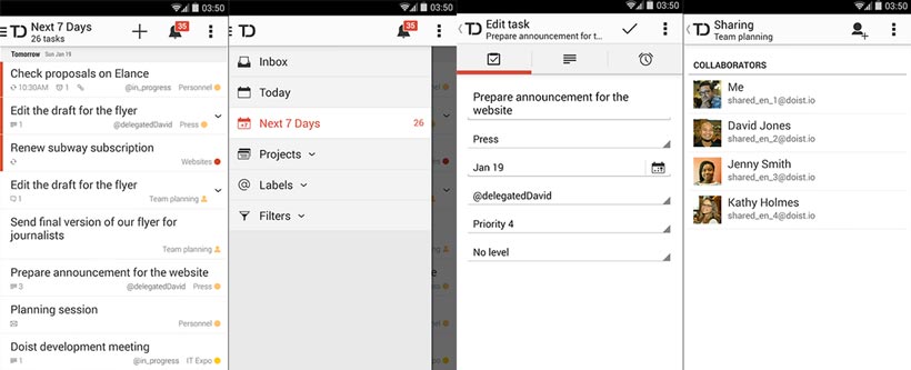 Едно от най-красивите приложения несъмнено е Any.do. Добавяш аларми, моменти, бележки, списъци изключително лесно, и получаваш след това нотификации по възможно най-малко натрапчивия начин. Всички се съхраняват в облачно пространство, така че може да ползваш приложението на колкото устройства искаш с твоя акаунт. Разполага със собствен autocorrect и собствена вградена платформа за гласово разпознаване, ако наистина те мързи да напишеш каквото и да било.