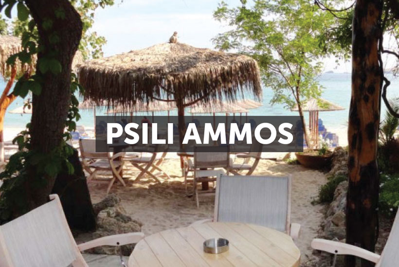 Следващaта ни спирка е Psili Ammos Beach Bar. Той се намира на главния път за Потос, на усамотена плажна ивица със същото име, което в буквален превод означава „фин пясък“. Тук може да задоволиш всичките си рецептори със свежи коктейли под плетените чадъри или да опиташ пресни октоподи и калмари под дебелата сянка в ресторанта. Ако си от тези, които обичат да са в действие, в близост до бийч бара има площадка за волейбол, както и атракциони за водни спортове.