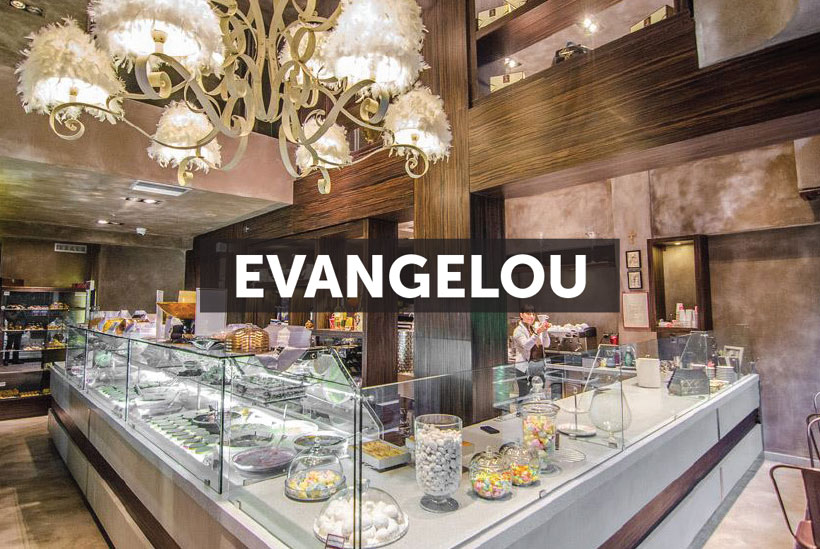 Evangelou е страхотна модерна сладкарница, известна със своите еклери, които освен страхотния си вкус имат и много награди от кулинарни фестивали. Прясно изпечените тестени фунийки можеш да напълниш с няколко вида различен истински шоколад – черен, млечен или бял. Допълнително може да добавиш дребни ядки и така всеки път ще имаш нов вкус, но все така як. Витрините са пълни с всякакви вкуснотии, приготвени от пресни продукти. Evangelou се намира на пешеходната улица, не го пропускай.