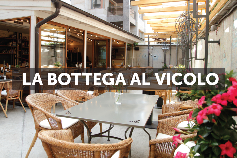 La Bottega al Vicolo e последната локация на италианската група La Bottega, която има свойството да ни пренася на Ботуша само с прекрачването на прага. Градината е закътана в спокоен вътрешен двор на тихата ул. „Огоста“ 5, а интериорът съчетава светло дърво, много цветя и артистично изрисувани стени. Останалото са традиционна италианска храна, много автентични продукти и гарантирани юнски усмивки.