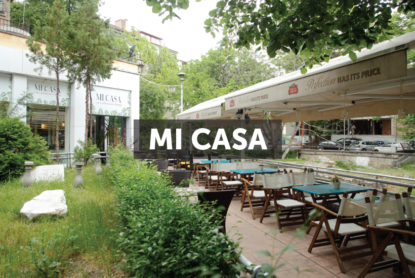 Гостоприемният Mi Casa ни води при себе си заради романтичната си градина със специален статут. Разположен на „Сердика“ 18, с вход откъм ул. „Искър“ 1, ресторантът се гордее с тераса, която крие истинско съкровище. Древните тракийски руини от митична кула, на които можеш да се насладиш тук, са буквално на една ръка разстояние, а всичко това е допълнено от свежи вина и страхотно сезонно меню.