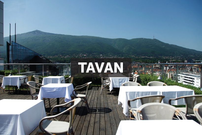 Една от най-добрите панорамни гледки, които сме виждали напоследък, съботно-неделен брънч, прясна беломорска риба, морски деликатеси, аржентинско охладено месо, американски стекове, прясна паста и свежи салати. Всичко това намираме на покрива на Tavan, а тухлените комини, изчистеният интериор и елегантните бели покривки в комбинация с разкошното софийско небе са ни достатъчни за едно наистина високо лято!