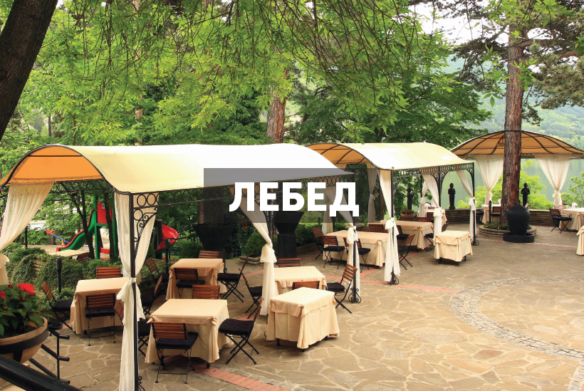 Ресторант „Лебед“ е едно от онези райски кътчета, сякаш създадени по приказен образец. Просторната градина, която може да приеме повече от 500 гости, е дом на над 100 вида редки екзотични птици, шуртящи шадравани, красиви цветя, многобройни приглушени светлини и романтични свещи. Разположен на брега на Панчаревското езеро, „Лебед“ неколкократно е бил място, на което двойки са се вричали във вечна любов под сянката на някое кичесто дърво и естествения пленяващ звук на езерото. Ресторантът естествено се вписва в заобикалящата го природа, давайки възможност на гостите си да се насладят на спокойствие и ексклузивна европейска и средиземноморска кухня в интимна обстановка и с красива гледка, напълно отделени от забързаното ежедневие.
