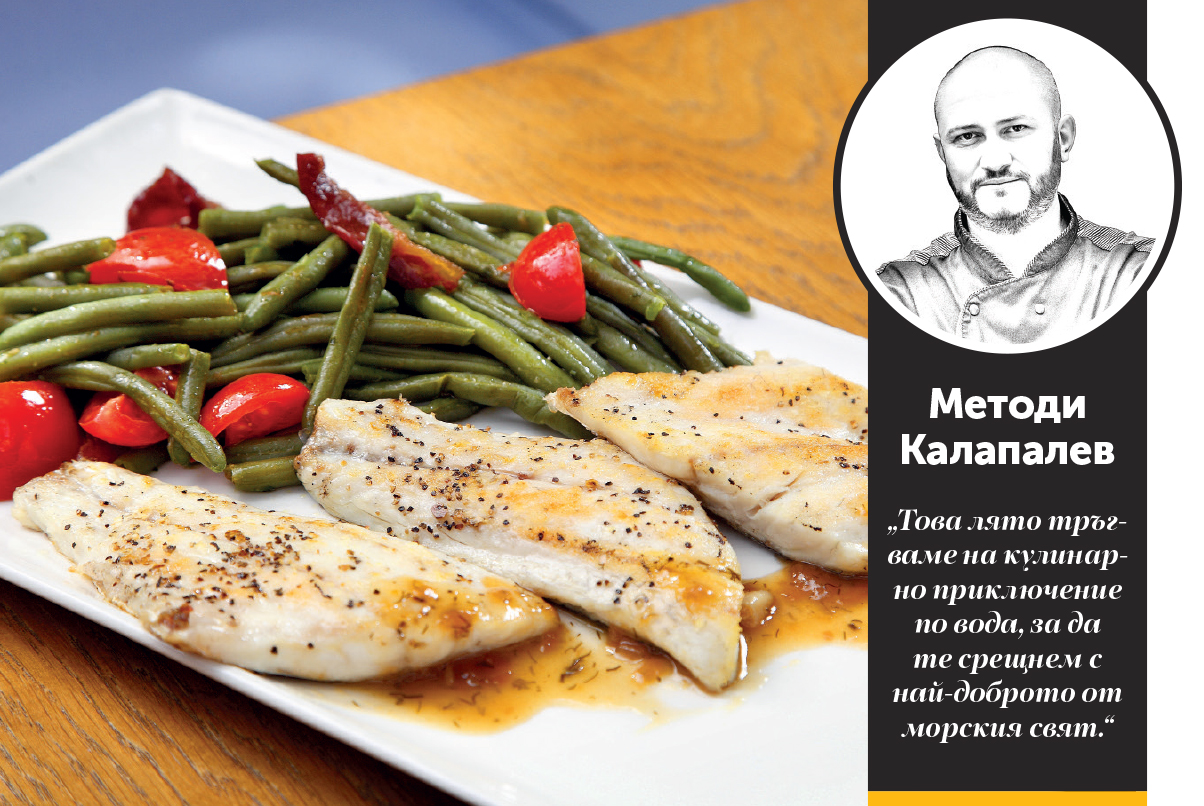 Лайтмотивът на идващото лято тук е повече от ясен. Това е рибата! Изцяло новото сезонно меню включва пресни морски дарове, като освен на рибата от ресторанта залагат много и на скариди и миди. Ние пък веднага склонихме глава пред изяществото на този лаврак, сотиран със зелен фасул, акомпаниран от чист бекон и чери доматки и поръсен с домашен средиземноморски дресинг.