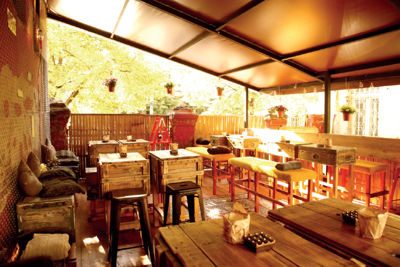Едно от най-кокетните барчета в града е закътано отстрани на Военния клуб и носи цялото очарование на мястото, което го е приютило. Флорални диванчета, птици, накацали по жълтите стени, високи столчета и симпатични ретро масички посрещат гостите в лятната градинка. Отбивките през нея си заслужават, независимо дали искаш да изпиеш сутрешното си кафе заедно с пресата, или си на вълна за няколко коктейла с приятели.