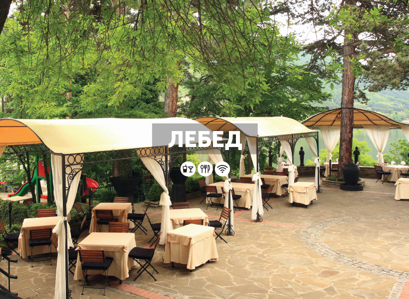 Ресторант „Лебед“ е едно от онези райски кътчета, сякаш създадени по приказен образец. Просторната градина, която може да приеме повече от 500 гости, е дом на над 100 вида редки екзотични птици, шуртящи шадравани, красиви цветя, многобройни приглушени светлини и романтични свещи. Разположен на брега на Панчаревското  езеро, „Лебед“ неколкократно е бил място, на което двойки са се вричали във вечна любов, под сянката на някое  кичесто дърво и естествения пленяващ звук на езерото. Ресторантът естествено се вписва в заобикалящата го  природа, давайки възможност на гостите си да се насладят на спокойствие и ексклузивна европейска и  средиземноморска кухня в интимна обстановка и с красива гледка, напълно отделени от забързаното ежедневие. Ул. "Самоковско шосе" 83