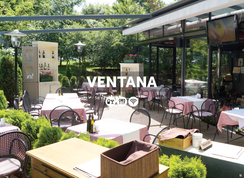 Обгърнатa в зеленина и спокойствие, градината на ресторант Ventana е абсолютното бижу на квартал Мусагеница. Кошниците с цветя, пепитените червени покривки, големите фенери от ковано желязо и всички дребни дървени детайли са изпипани до съвършенство и те пренасят на друго място, в по-романтично време. Радост за сетивата е и храната, приготвена само от продукти с ясен биологичен произход. Опитай от свежите  салати, вкусна скара на дървени въглища с подбрана чаша вино и за десерт нещо по домашна рецепта. Ул. "Въртопо" 150