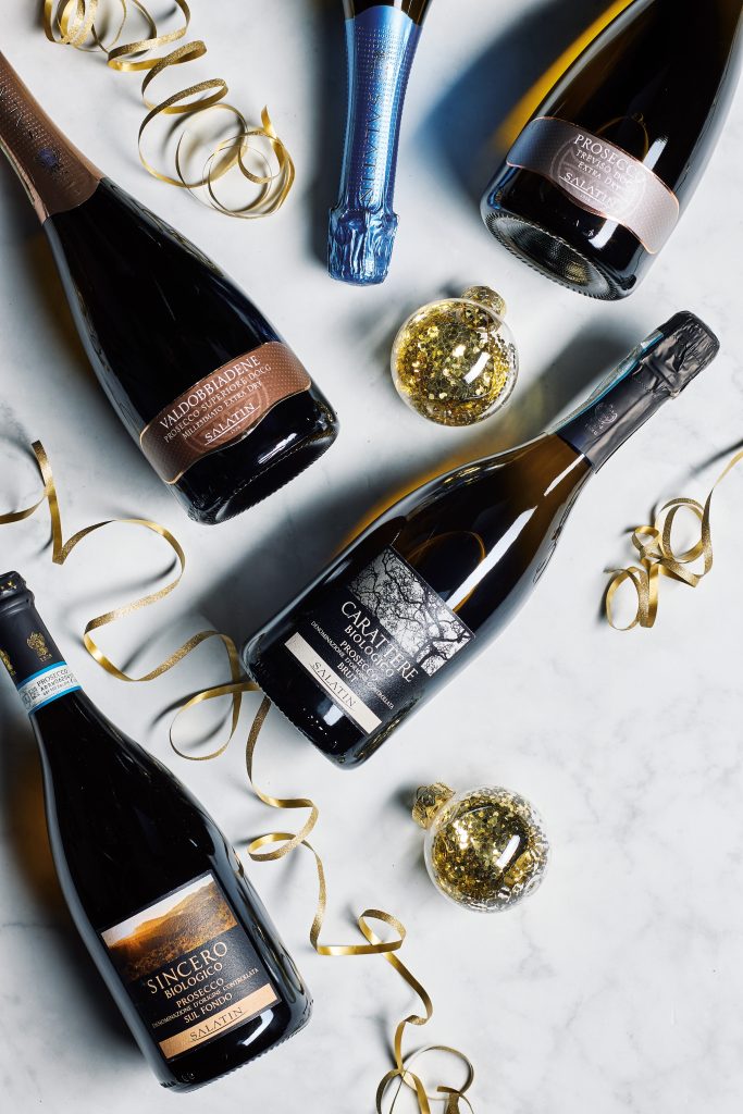 На снимката: Salatin Carattere Prosecco DOC Biologico; Salatin Sincero Prosecco DOC Sul Fondo Biologico; Salatin Framos Vino Spumante Extra Dry Millesimato; Salatin Prosecco Treviso Extra Dry; Salatin Prosecco Valdobbiadene DOCG