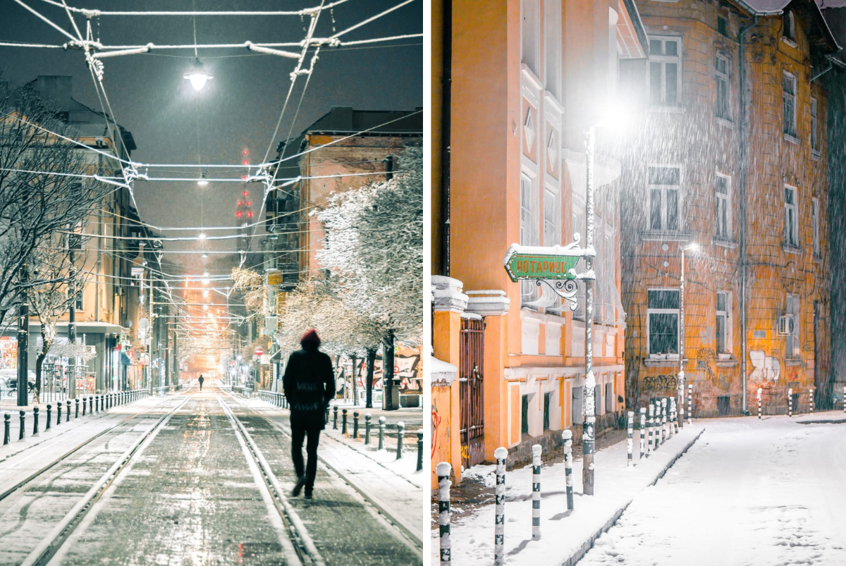 Разходка из улиците, кварталите и моментите, които снегът прави видими