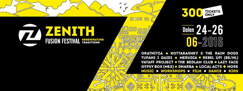 Zenith Fusion сигурно е единственият от фестивалите тази година, който ще приеме едва 300 гости във вълшебното родопско село Долен. Той започва на Еньовден – магическия празник на светлината, здравето и плодородието, и под звуците на най-актуалните български групи, които смесват фолклорна музика със съвременни жанрове – Мерудия, Тъпани и гайди, Oratnitza, Kottarashky, Dharba, както и вълнуващ списък от международни артисти, които тепърва ще бъдат обявени, ще се опита да покаже традиции и съвременност в изкуството и в предприемачеството. Поднесен по нов, интерактивен и креативен начин, фолклорът ще прескочи границата на прашните музейни витрини и ще заеме своето пълноправно място в глобалния свят.