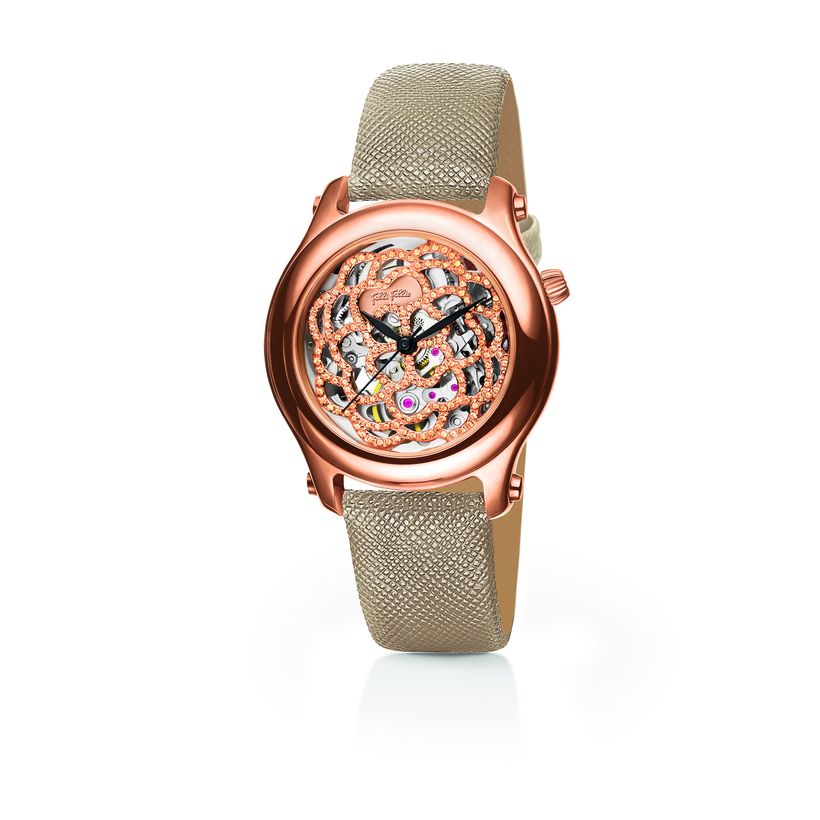 Глобалният успех на емблематичния Heart4Heartмотив от четири сърца и продължава своето модно пътешестние с колекцията Heart4HeartDiaphanous. Любителите на видимия механизъм познават добре култовия дизайн, следвайки мотото, че външността е нищо без красотата на вътрешността. Автоматичните часовници Heart4HeartDiaphanousса със семпъл и дискретен циферблат с римски цифри. Кожените каишки са в крак с модните тенденции за сезона като бяло, червено и сиво, съчетани с позлатени в розово злато корпуси. Едно важно условие за елегантност.
