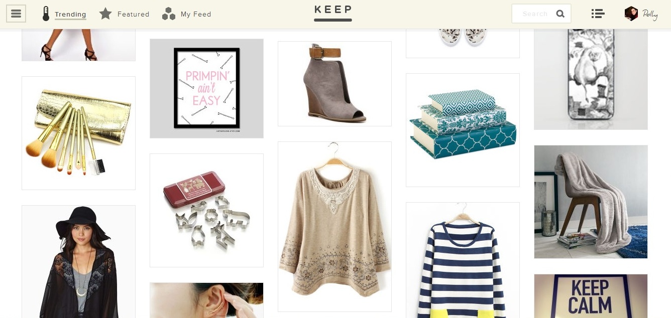 Keep (както подсказва и името) е по-скоро място за съхранение на най-любимите неща, които сме видяли из мрежата. Но освен това добавя и опция за пазаруване. Как се случват нещата? Можете да разглеждате продуктите на всички останали потребители и да запазвате свои, а можете и да пуснете търсене (в случай, че все още не сте разбрали марката на уникалните боти, които мернахте вчера в нета). С две думи – Shazam в модата.