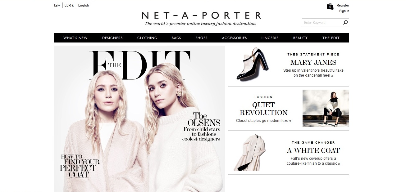 Сайтът предлага висок клас дрехи и аксесоари на брандове от висшата мода, като наподобява интерактивно списание. Можете да разглеждате различни аутфити на известни личности и след това да си поръчате дрехите им. Освен това, ако се абонирате, ще получавате една полезна седмична доза новини от модния свят, както и съвети и нови продукти. А ако сте от редовните потребители, след определен брой покупки получавате подаръци.