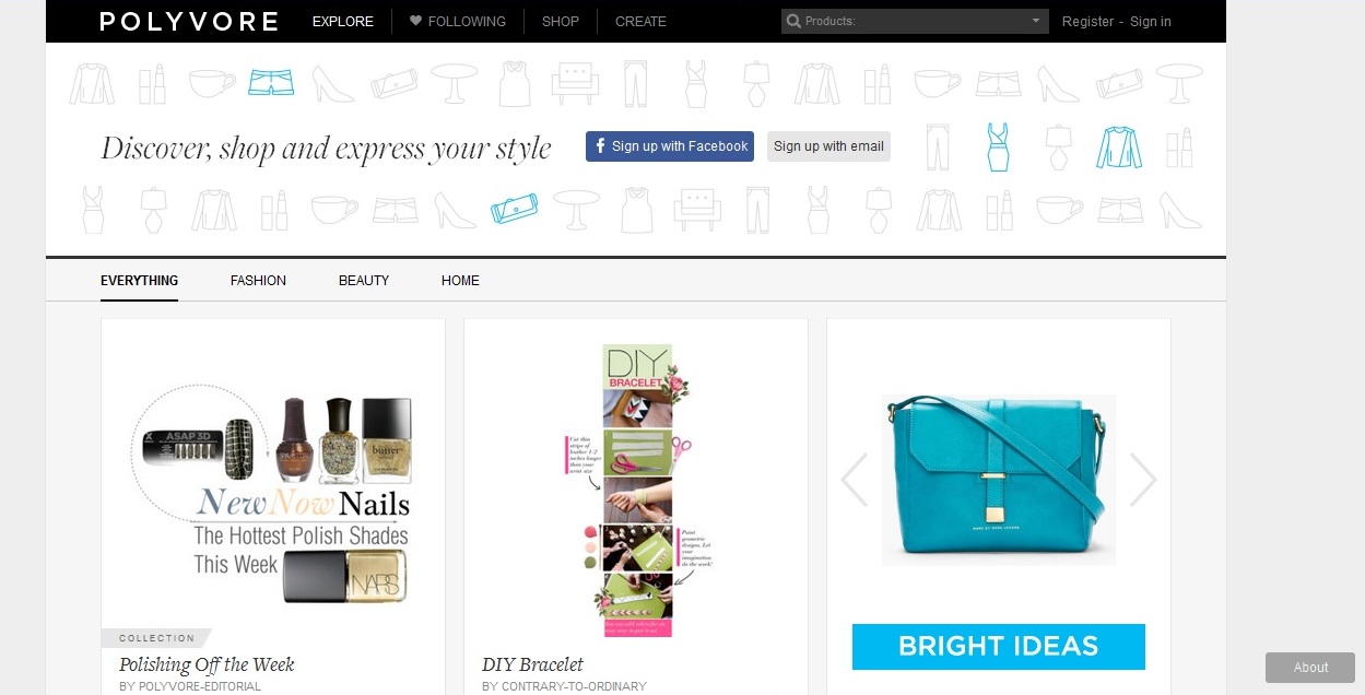 Този сайт е по-скоро онлайн мрежа за модни маниаци, където те могат да създават аутфити, да следват трендове, които им харесват и какво ли още не. Но основна част от Polyvore е пазаруването, като главният плюс е разнообразието. Едно от удобствата на ваше разположение е търсенето според даден тренд – например: трябват ви токчета, но не просто токчета, а конкретен тип. Следователно – вашето търсене ще покаже резултати от безброй модни марки, които произвеждат конкретния модел. А за улеснение – можете да пазарувате и цели аутфити, които сте набелязали. Освен дрехи и обувки, ще намерите още много аксесоари, мебели и козметични продукти.