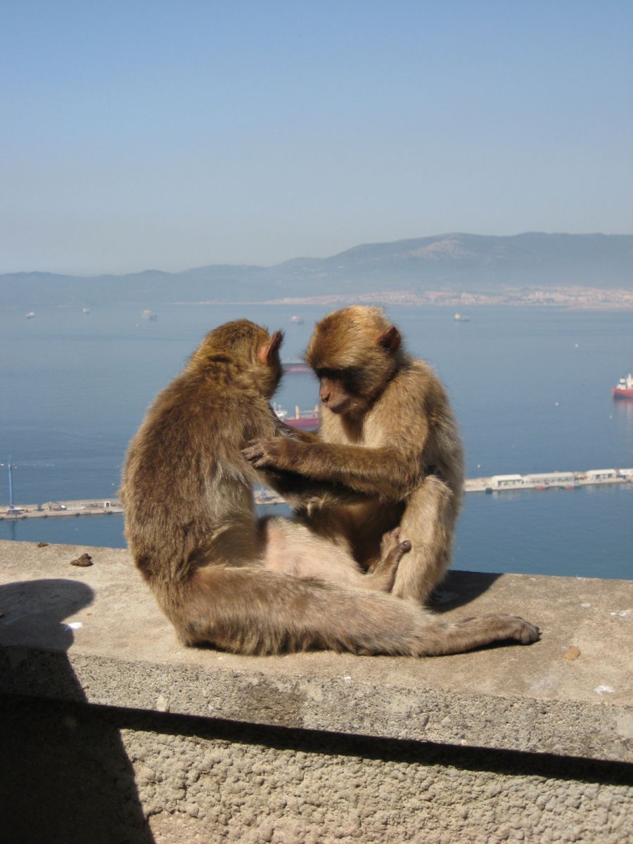 Друга забележителност на Гибралтар са свободно разхождащите се навсякъде маймунки. Малки и без опашки, те обикновено са приятелски настроени към хората. Никъде другаде в Европа няма да срещнете пуснати на свобода толкова много маймуни. В един момент започнах да се чувствам като че ли съм в някоя африканска държава. Всъщност животинчетата са точно оттам и за нашите европейски нрави подобно поведение е доста необикновено. Но маймуните са се превърнали в истинска атракция за Гибралтар и правителството няма никакво намерение да взима мерки по въпроса. Досега няма оплакали се, най-многото, което могат да направят маймунките, е да протегнат ръка за някой банан или чипс. Но ако не им дадете вие, германският турист зад вас ще го направи. Така те преживяват и гласуват с две лапи за туризма.