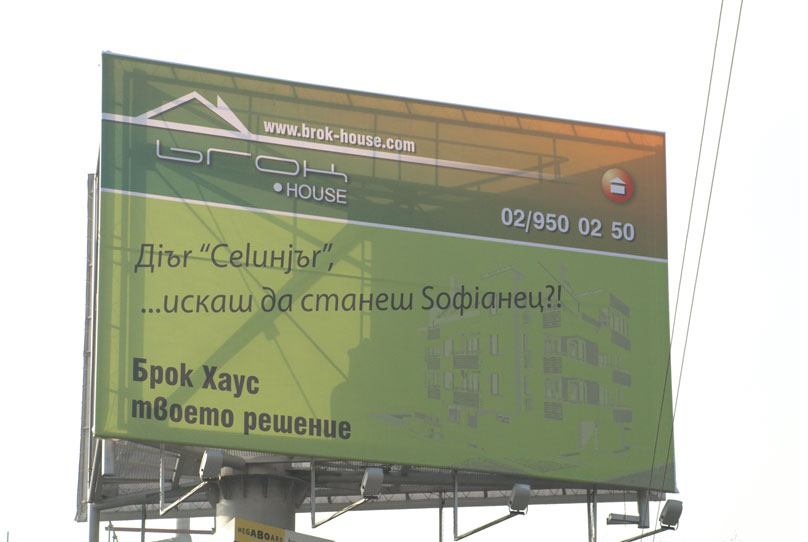 На пръв поглед този билборд едва ли би грабнал вниманието на забързан за работа минувач, тъй като от него няма да научи нито за актуалните участия на родни звезди в клубовете, нито за намалените колбаси в близкия магазин. Но ако този минувач е „столичанин в повече“, един въпрос ще отекне в съзнанието му. На това залага брокерска къща, която насочва усилията си към привличане на точно определен сегмент – прииждащите хора от провинцията в София, наречени с фамилията на американския писател Джеръм Дейвид Селинджър за благозвучие и по-конкретно тези, които искат трайно да се установят в столицата, закупувайки си жилище. Единственото, което може да помрачи успеха на провокативното и забавно послание, е липсата на чувство за хумор по темата у пазарния сегмент, към който е насочено.