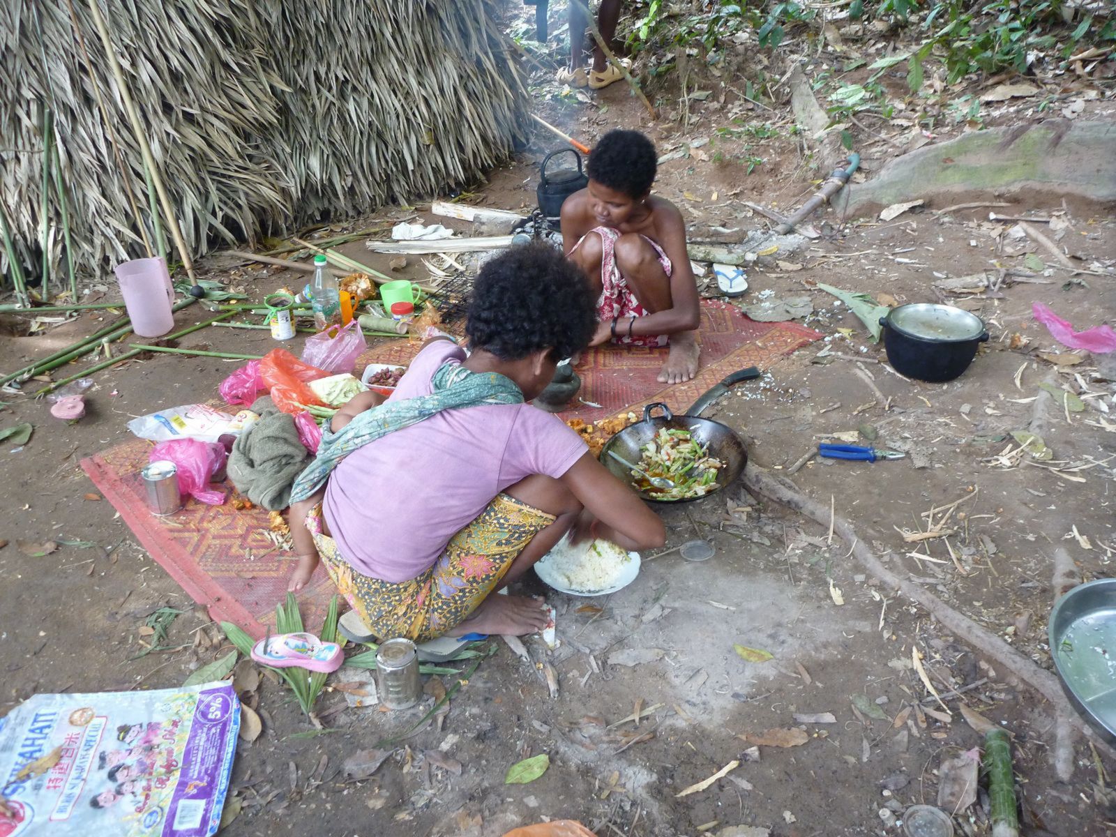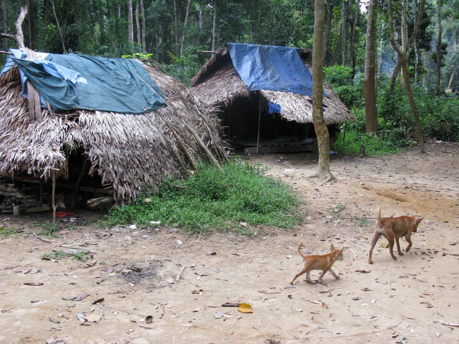 На следващия ден ни очакваше среща с местните племена, така че нямаше време за глезотии. Сънят и няколкото наденички на закуска възвърнаха силите ми и с нетърпение очаквах новия ни водач. Когато обаче разбрах, че те живеят навътре в дъждовната гора и преходът през зеления ад е неизбежен, ентусиазмът ми намаля, но не изчезна. Близо половин час крачехме под покрова на джунглата, където въздухът бе нагорещен и застоял. Просеката беше изключително кална и хлъзгава, дъждът бе отмил почвата и на места корените на дърветата изпъкваха като жилести ръце, подаващи се от земята, готови да те захванат. Използвахме ги като стъпала да се изкачим нагоре по хълма, а равната част по-нататък не се оказа по-лесна, тъй като цялата беше препречена от паднали дървета, които трябваше да прескачаме. Мъчението обаче си заслужаваше, тъй като след 30 мин. изведнъж се озовахме сред сламени колиби, кучета и простряно на въжета пране, което не ми беше ясно как щеше да изсъхне в почти 100% влажност тук (поне блузите ми в лоджа вече 24 часа висяха мокри). Посрещна ни старейшината, който вдигна ръка и каза хелоу. Преди да си помисля, че той знае английски, се сетих, че хелоу е обичайният поздрав в мултинационалната Малайзия. Насядалите под палмовите навеси мъже жени и деца ни гледаха втренчено, и аз започнах да си припомням историите за първите изследователи, пристигнали тук; и макар да знаех, че народността батек, или както те сами се наричат оранг асли (оригинални (местни) хора) не са канибали, техните предци са били, и през 1920 г. английски мисионери открили в село в Таман Негара казан, пълен със сварени ръце и крака. Жената, облечена в дълъг саронг, която разбъркваше гъста каша във врящото на открития огън гърне до мен, не ми помогна особено да мисля в друга насока.
