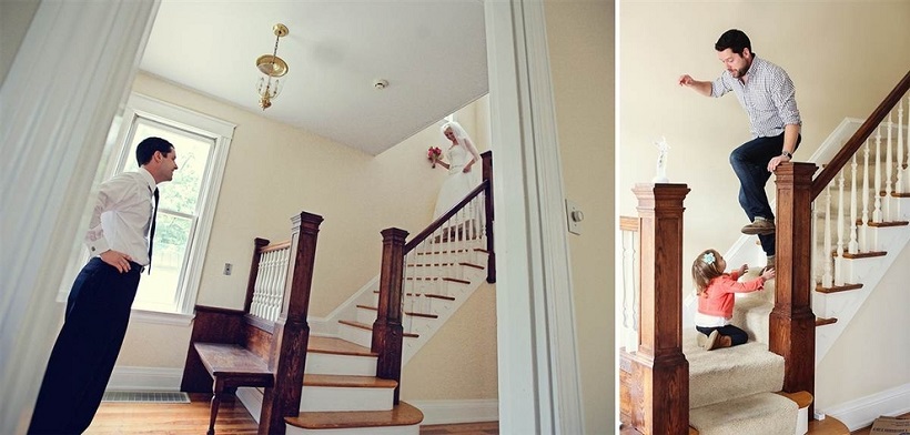 Бен и Оливия пресъздават същите кадри – снимат се заедно пред вратите, до прозорците, слизайки по стълбите, точно както когато Бен за пръв път вижда булката си преди 4,5 години.