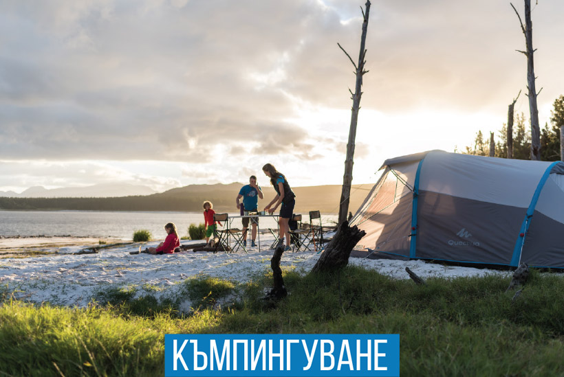 След целия маратон от летни спортове решихме да опитаме още нещо интересно като за финал – къмпингуване. След края на работната седмица, напълнихме раницата с провизии и минахме през Decathlon на околовръстното, за да си вземем една от най-популярните марки палатки – Quechua и модела ARPENAZ FAMILY, в който може да се побере половината офис. Семейната палатка има едно спално помещение за 4 човека и голямо високо преддверие с под с бордове. Успяхме на залез-слънце да сме в горичката зад Bash Bar и да разпънем палатката за не повече от 20 минути. Пространството вътре беше изненадващо голямо. След късния плаж, лагерния огън и няколко шота на бара, се събудихме, щастливи и с изглед към морето.