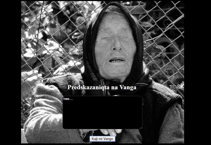 Предсказаният текст звучи така, сякаш е казан от Ванга, защото в синтезатора на текста съм използвал петрички диалект. Освен това е написан на „шльокавица“, с латински букви, защото мисля, че хората, които взимат на сериозно Ванга, употребяват този начин на писане – и ще им е по-лесно да го възприемат.