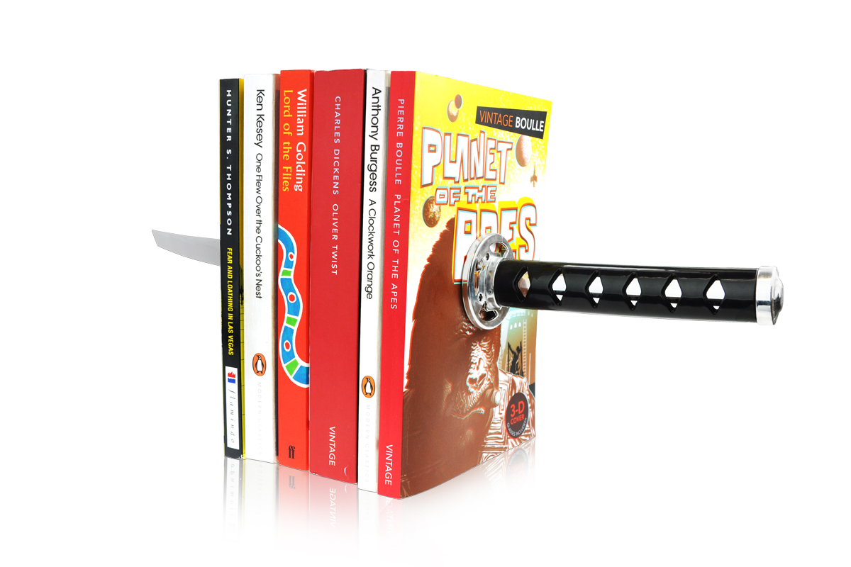 Да подариш на някого книга показва липса на особена креативност при идеите, но ако му дадеш книгодържачка с форма на самурайски меч Катана – това е велико! Естествено мечът не е истински, така че, ако случайно на приятеля ти не му хареса подаръкът, не може да те заколи с него. Освен това, ако се чудиш как се крепят книгите – използва се силата на магнитното привличане, няма клъцни-срежи. И понеже много често феновете на Kill Bill намират четенето на книги за занимание от миналия век – държачката работи също толкова добре с DVD-та и видеоигри.