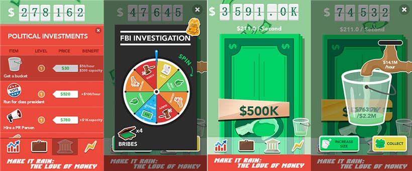 Пръскай пари на воля. Изключително забавна и пристрастяваща игра, която изисква от теб единствено да влачиш банкнота по банкнота и да харчиш на воля. С увеличаването на хвърлените на вятъра пари получаваш възможности за още по-ефективно разхищение.