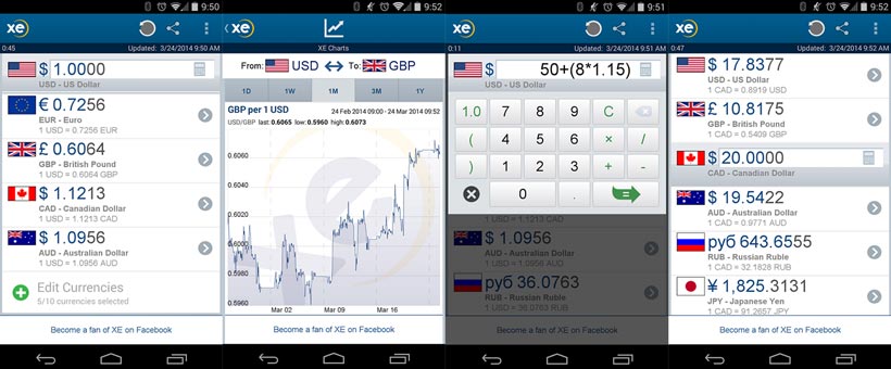 Идеалният валутен конвертор. Xe.com разполага с актуална информация за всички официални валути по света, както и за техния курс една към друга. Конверторът пресмята колко струва една валута спрямо друга и може дори да следиш движението на стойностите им.
