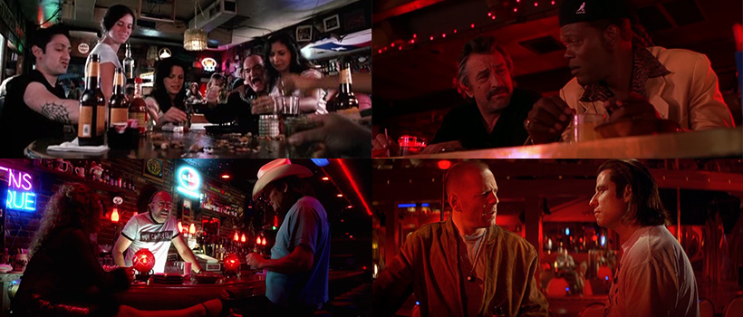 Баровете и ресторантите са място за действие в огромна част от американските филми (и не само), но Куентин им придава един особен чар. Голяма част от неговите филми се развиват точно по такива места, а любовта му към тях се усеща. Няма как да гледаме "Криминале" и да не ни се прииска да пием кафе на масата на Тим Рот и Аманда Плъмър. Garcon! Cаfe!