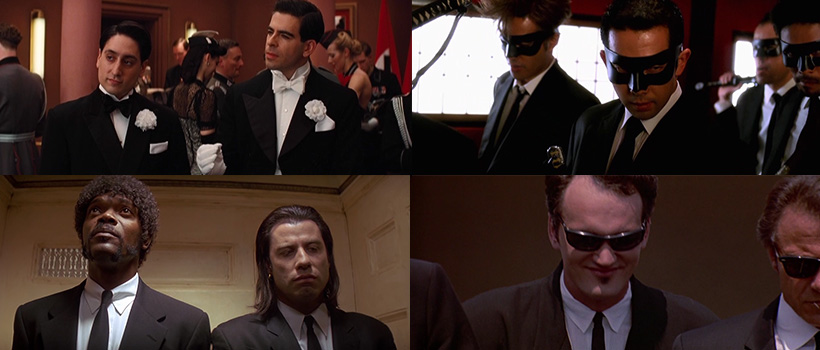 Гангстери и наемници с костюми? Дали началната сцена от "Глутница кучета" би изглеждала толкова впечатляващо, ако героите не бяха облечени в черни костюми с бели ризи? Или първата сцена с Джулс и Винсънт в колата от "Криминале"? А пък нахлуването на "Лудите 88" в Къщата на сините листа от "Убий Бил част 1"? Вероятно да, защото всички тези моменти са написани, режисирани и изиграни божествено, но костюмите придават една допълнителна нотка на естетика и класа, която няма как подминем лековато.