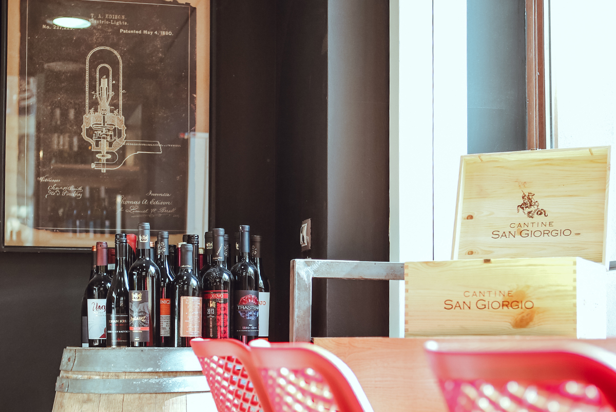 Това е и единственото място, където можеш да консумираш всяка от изложените бутилки на чаша, при това с нулево оскъпяване – цената в магазина се дели на 5 за чаша вино.