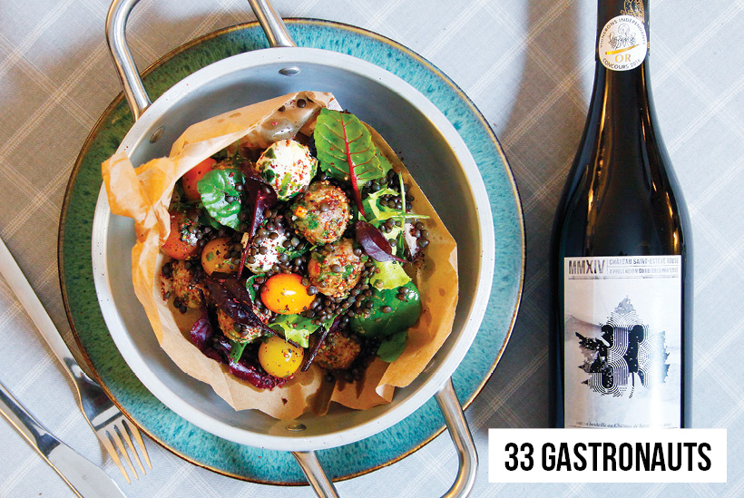 Когато говорим за вино, няма как да подминем 33 Gastronauts. Тук ни очароват с фина винена селекция с разнообразие от сортове и региони. На място се насладихме на салата телешки кюфтета с френска леща белуга, топки от мариновано сирене, домати чери и синапен дресинг, в компанията на разкошното им 33 Гастронавти вино, бутилирано за тях в Шато Сент Естев – Лангедок, Франция.