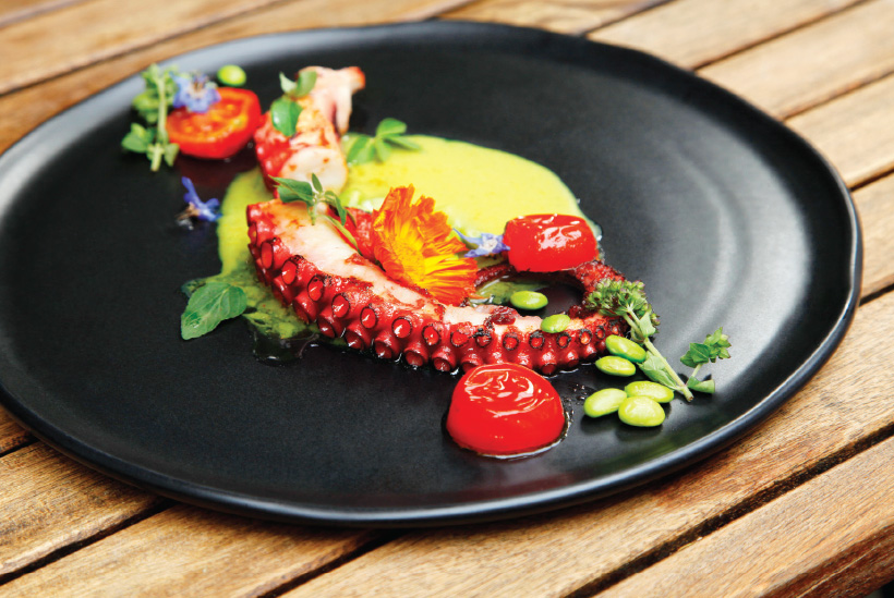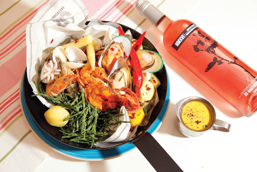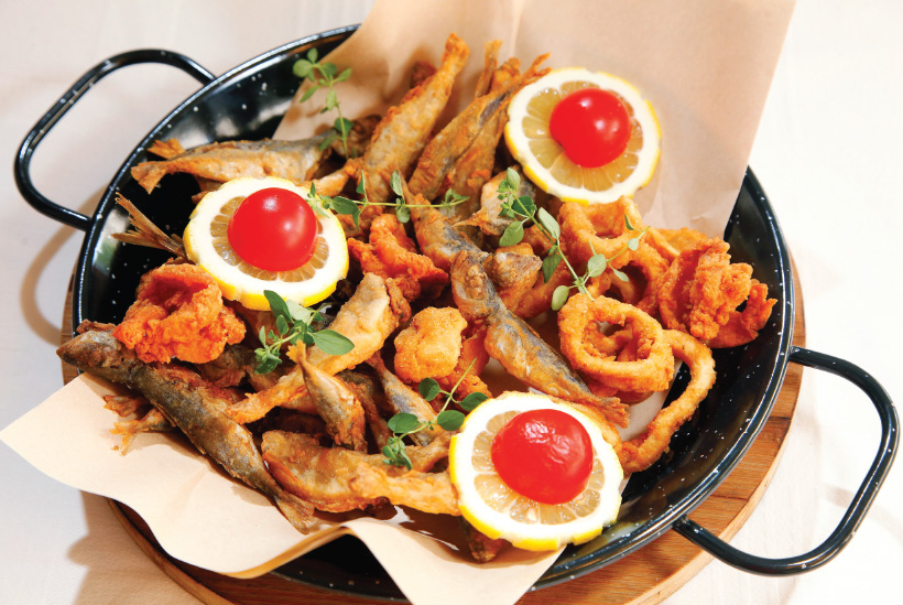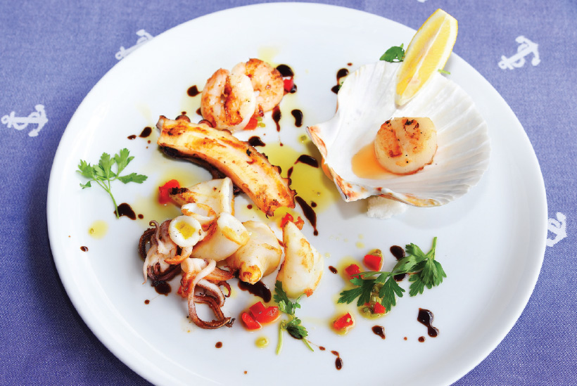Целият подводен свят е събран в платото морски дарове, в което се гмурваме след края на работния ден. Раци, миди „Сен Жак“, калмари, скариди и октопод ни правят компания, докато боцваме с виличка крехко приготвеното фагри, пълнено със сотирани зеленчуци и пяна от водорасли. Рецептата за дълъг живот включва добре изстудено узо и добра компания, така че действай по предписание.
