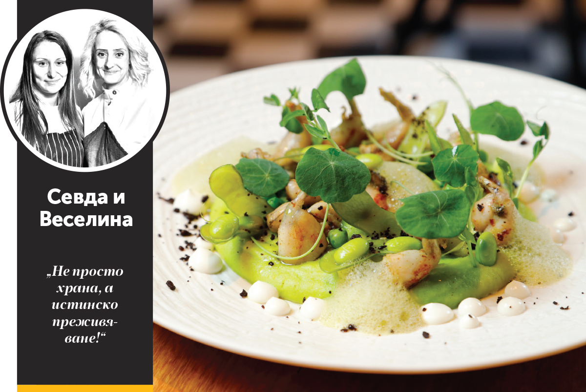 Тук не сме клиенти, а гости и това е най-хубавото в цялата кулинарна история. Севда и Веси ни посрещат с отворени обятия, представяйки ни с любов всяко едно от авторските си предложения. Ние се спираме на жабешки бутчета, които плуват в истинско зелено блато с латинки и ни носят изключително усещане за пълнота. Ако щеш вярвай, но буквално очите ни блясваха от удоволствие при всяка хапка.