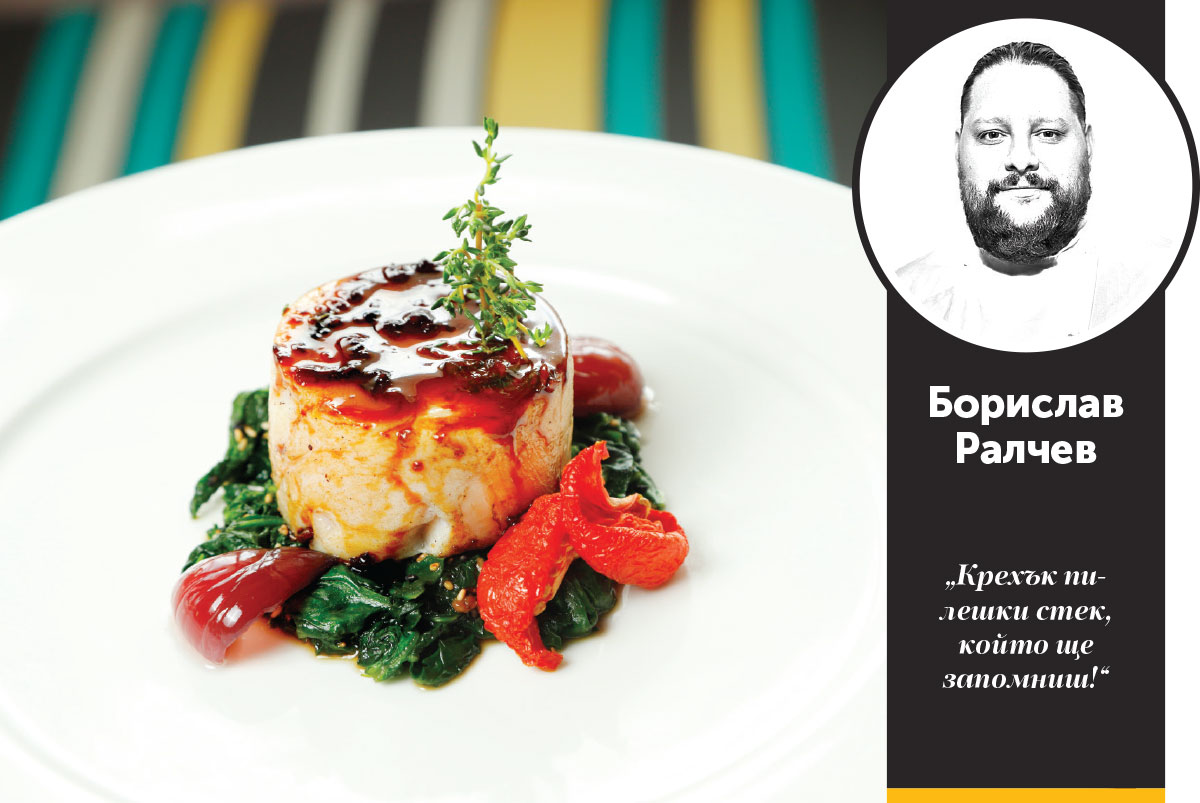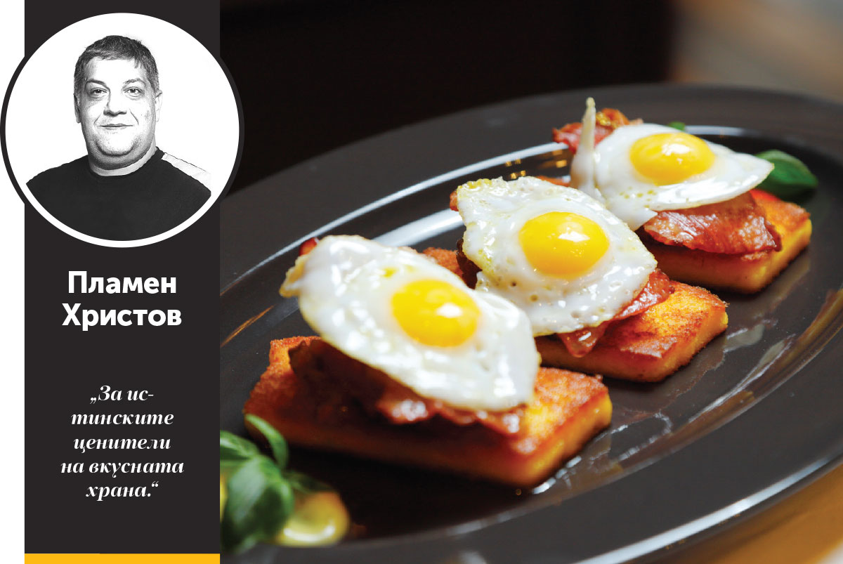 Тук тайната е в комбинирането на пресни продукти, аромати, цветове, подправки и всичко необходимо до получаването на омагьосващо вкусно ястие. Такова е и това на снимката, което минава рамките на просто добрия вкус и е нещо, което със сигурност ти препоръчваме да опиташ. Дробчета с хрупкав бекон и чушков сос върху качамак, с яйце от пъдпъдък за истинските ценители на вкусната храна.
