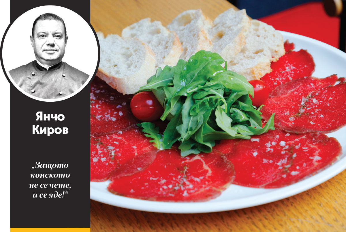 Главният готвач на Crystal steak house този път реши да ни нагости с нещо различно от говежди стекове, нещо, което е изключително вкусно, а славата му на полезна храна се носи навред. Става въпрос за карпачо от конско бон филе с яйчена сол, чери домати и багета на каменна пещ, което е перфектна комбинация от вкус, аромат, текстура и аранжировка. Както винаги предложението тук ни предоставя незабравимо усещане за всички сетива.