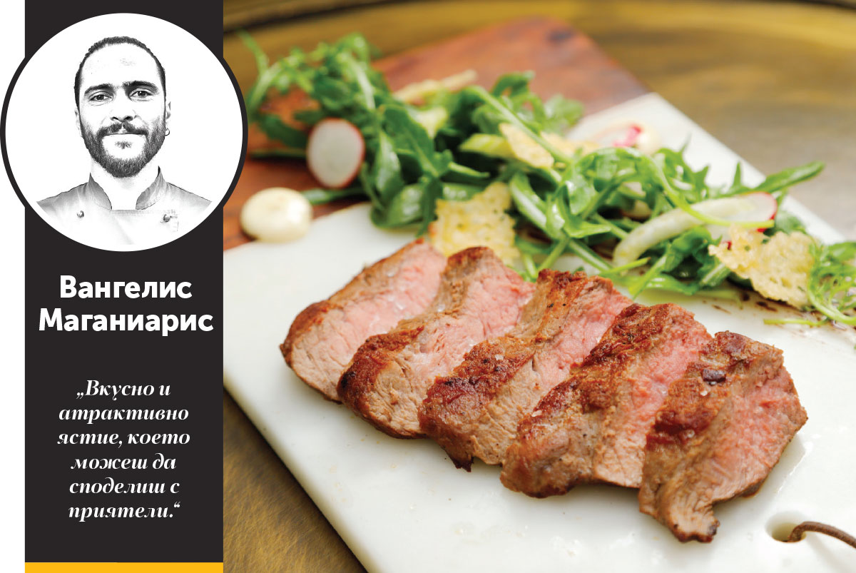 Талиатата с телешко, която си поръчваме, е само едно от ястията в новото меню, което е предназначено за споделяне с приятели. Освен него можеш да откриеш още неустоими хапки и вкусотийки, с които да допълниш напитката и виното, което си избрал. Това също си е предизвикателство, имайки предвид огромния асортимент от вина, които можеш да опиташ дори и на чаша благодарение на специалната система за съхранение на бутилки Bermar.
