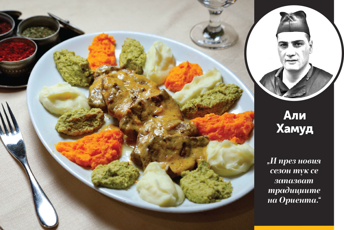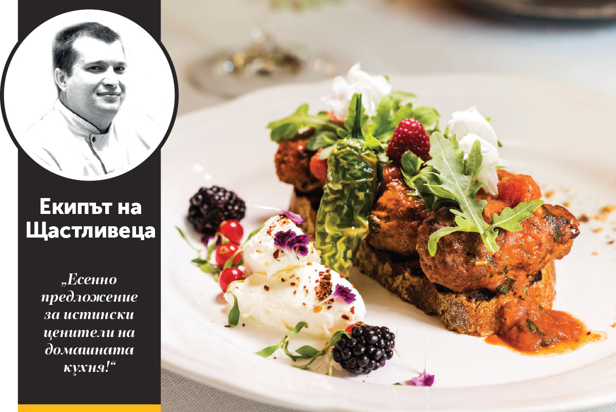 Нова любима дестинация, в която пастелни нюанси и вкусове от есента надничат от сезонното меню. Вкусно приготвената домашна кухня акомпанира на интериора, който в аристократична еклектика е събрал историята на отминалите времена. Този път пробваме телешко-агнешки продълговати кюфтенца, щедро поръсени с ориенталски подправки, в доматен сос на тиган, поднесени върху прясно изпечен хляб с домашен катък.