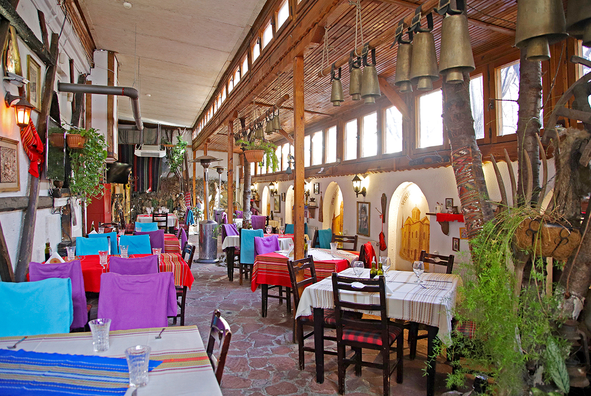 Тук сме едновременно в центъра на съвременна София и в няколко възрожденски къщи от 1866 г.! Вкусът на традициите гали небцето ни чрез традиционни рецепти и подбрани български вина и ракии. Народната музика на живо допълва автентичния интериор.