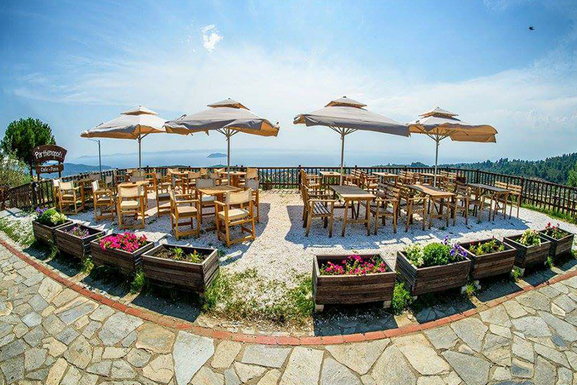 Рано сутрин с кафе, по обяд с топли и студени ястия, вечер с освежаващи напитки и вино – тук, сякаш на сцената на амфитеатър сред самата природа, ще се почувстваш като в приказка. А под звуците на птиците и морето, загледани в Олимп, "Кисавос" и островите Скопелос и Алонисос, си припомняме какво е да сме в абсолютна хармония със себе си.